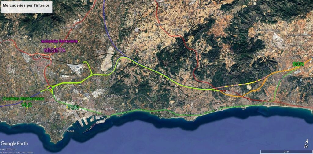 La Plataforma Mercaderies per l’interior ha estat treballant durant els darrers sis anys per aconseguir que les mercaderies transportades per ferrocarril a la zona de Tarragona passin per l’interior lluny de nuclis poblats, enlloc de per la costa en el tram Vila-seca, Tarragona, Altafulla, Torredembarra, el Creixell, Roda de Berà, Sant Vicenç de Calders. També proposem que no passin ni per Reus ni per El Vendrell, mitjançant sengles bypassos.